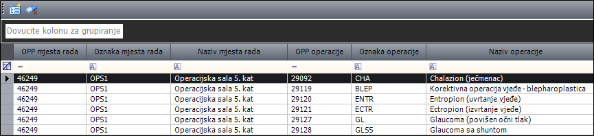 | Opis | Pregled operacijskih dvorana (mjesta rada), s mogućnošću upisa i brisanja operacijskih dvorana |