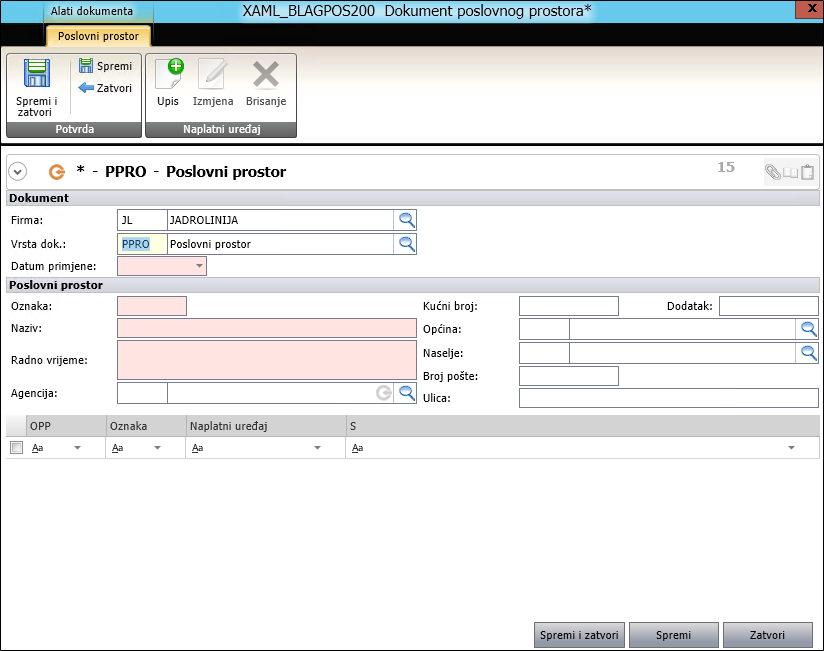 Modul XAML_BLAGPOS200 koristi se za upis i izmjenu dokumenta poslovnog prostora s mogućnošću: