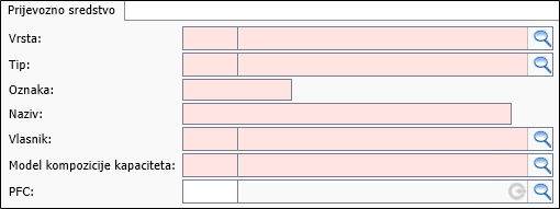 | Vrsta | Oznaka i naziv vrste prijevoznog sredstva. Vrstu prijevoznog sredstva izabrati iz izbornika pomoćne liste, a odabir potvrditi funkcijom Prenesi/ Prenesi i zatvori. |