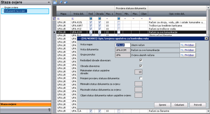 Poruke ovjere -> Definira opciju za prihvaćanje/odbijanje dokumenta